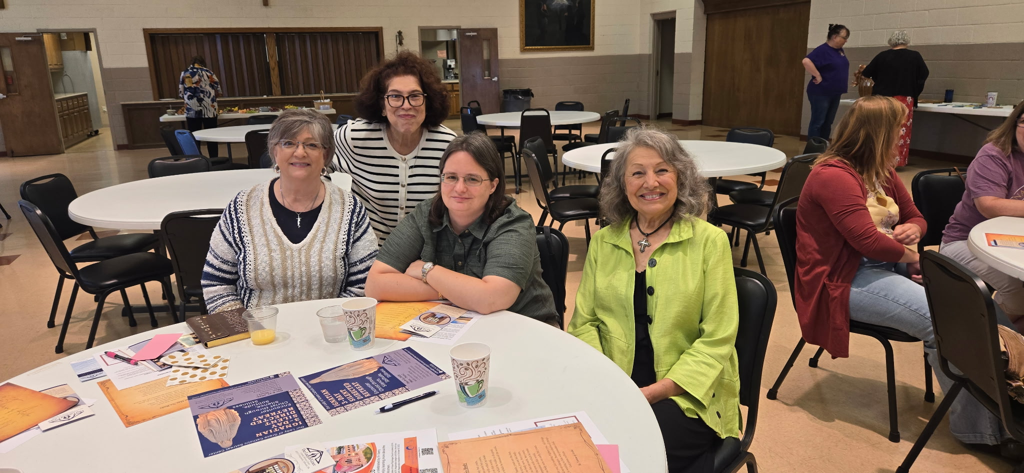 Working our ACCW table at the Oklahoma Catholic Women’s Conference last weekend. What a fabulous day. 1300 women, wow! Kathy Holland ,Linda Tucker, Sister Mary Diane Koorie , Novalyn Greff , Mary Ann Schmitt and Becky Adelman VanPool
